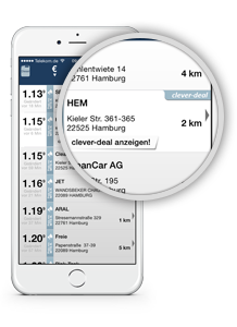 Befindet sich eine HEM-Tankstelle unter den Suchergebnissen in der angezeigten Tankstellenliste, wird in einem Umkreis von fünf Kilometern um jede einzelne HEM-Tankstelle herum geprüft, ob eine Wettbewerbstankstelle einen günstigeren Preis anbietet (ausgenommen sind Automatenstationen). Ist das der Fall, reduziert sich der Preis pro Liter Kraftstoff an der in den Suchergebnissen gelisteten HEM-Tankstelle exklusiv für den Nutzer der clever-tanken-App auf den Preis des günstigsten Wettbewerbers. Der Hinweis „clever-deal“ zeigt in diesem Fall an, dass der Verbraucher an der betreffenden HEM-Station sparen kann. Bei einem kurzen Druck auf den Touchscreen kann der Autofahrer dann einen Beleg für die Tiefpreisgarantie generieren, der den Tiefpreis optisch festhält und in der App gespeichert werden kann. Er gilt ab Erstellung für 30 Minuten und kann beim Tanken an der betreffenden HEM-Tankstelle eingelöst werden.